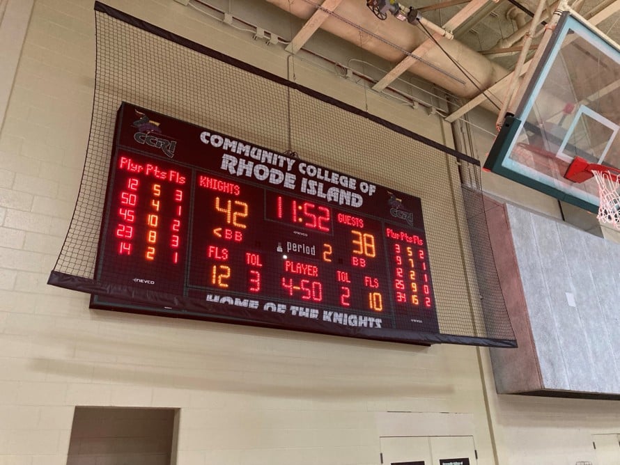 Nevco is proud to announce the completion of a cutting-edge installation at the Community College of Rhode Island Warwick, RI. The project features a black Model 2781 scoreboard with Red Intelligent Captions™, providing clear, easy-to-read game information for fans and players alike.