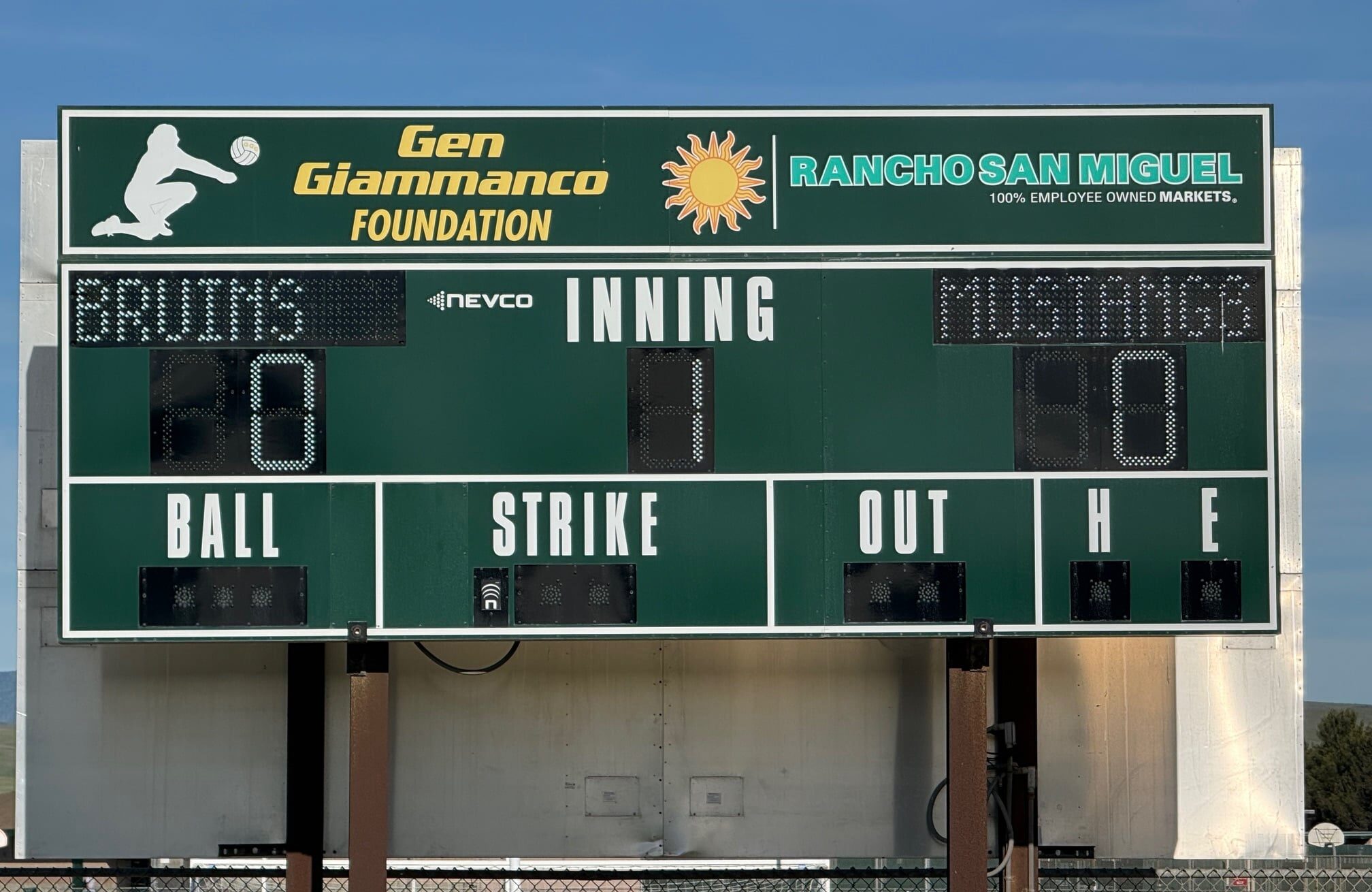 Nevco is proud to showcase a new baseball scoreboard installation at Greenfield High School in Greenfield, California. This project features our Model 1606 scoreboard, designed to deliver clear, high-visibility game information with a bold and cohesive look that complements the school’s athletic facilities. Finished in a striking green cabinet with crisp white striping, the scoreboard blends seamlessly with the school’s team colors while maintaining a professional, modern appearance. Bright LED digits ensure excellent readability from the field and stands, keeping players, coaches, and fans fully engaged throughout every inning. Above the scoreboard, integrated ADO signage provides valuable space for sponsorship recognition, creating opportunities for community partnerships and program support. This combination of performance and revenue-generating potential makes the installation both functional and impactful. The new scoreboard enhances the game-day experience at Greenfield High School, delivering reliable performance, improved visibility, and a polished centerpiece for the baseball field.